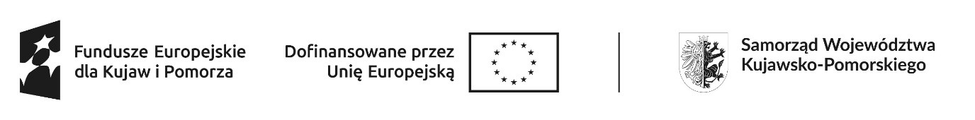 Projekt jest współfinansowany z Europejskiego Funduszu Społecznego Plus (EFS+) w ramach Priorytetu 7. Fundusze europejskie na rozwój lokalny Działania 07.04 Wspieranie integracji społecznej programu Fundusze Europejskie dla Kujaw i Pomorza 2021-2027.