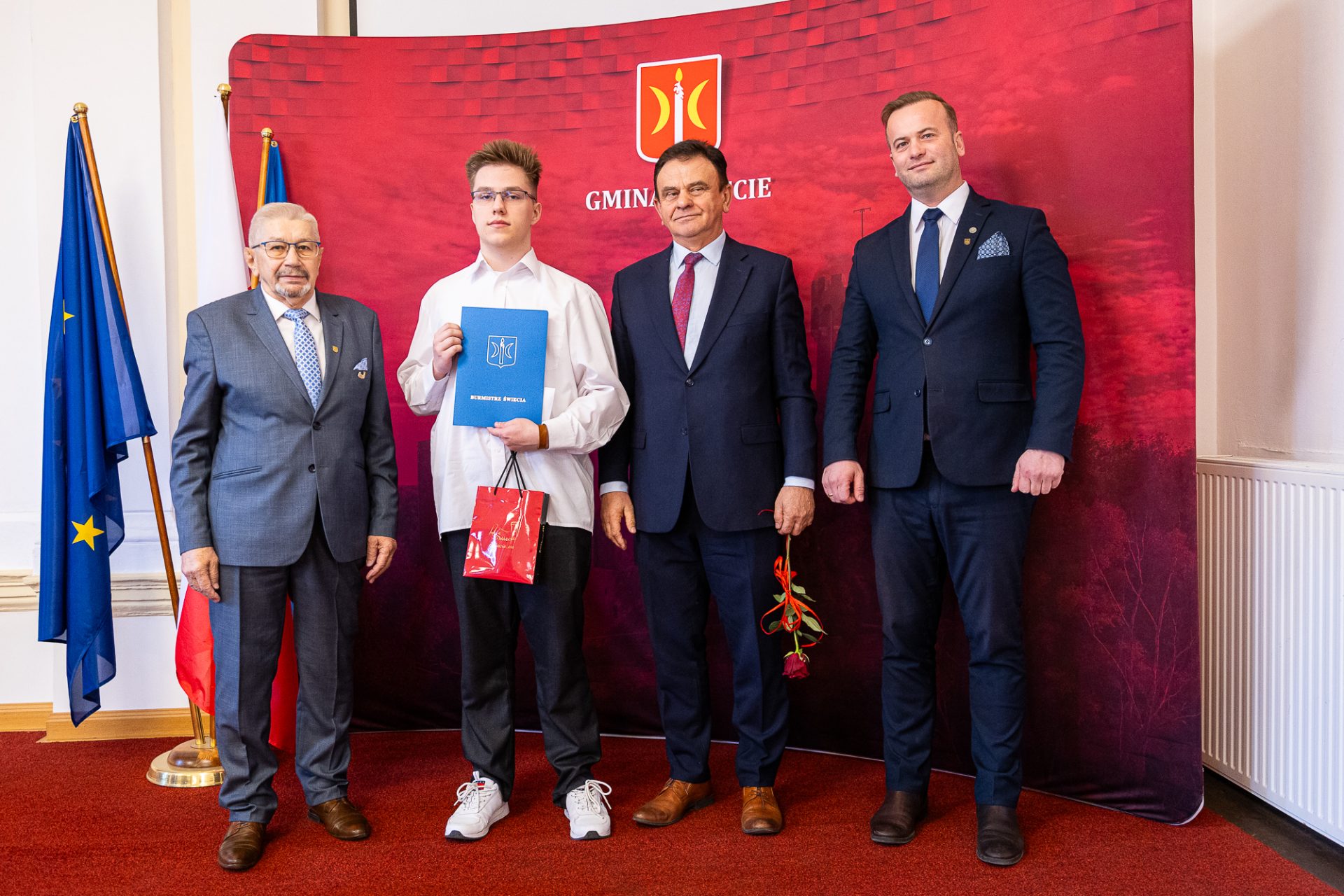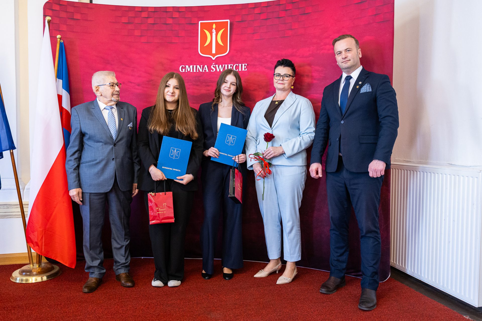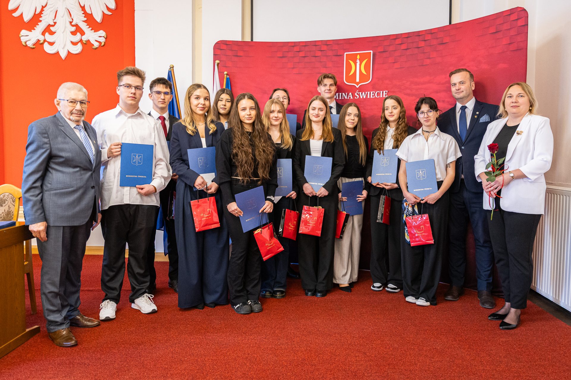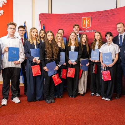 Z tej okazji uczniowie i uczennice z naszej gminy, uczący się na jej terenie, zostali zaproszeni do Urzędu Miejskiego, gdzie burmistrz Świecia, Krzysztof Kułakowski, wręczył nagrody 25 prymuskom i prymusom, doceniając ich ciężką pracę, zaangażowanie oraz determinację w dążeniu do sukcesu. To wyjątkowe spotkanie było nie tylko formą uhonorowania ich osiągnięć, ale także motywacją do dalszego rozwoju i podejmowania kolejnych wyzwań.