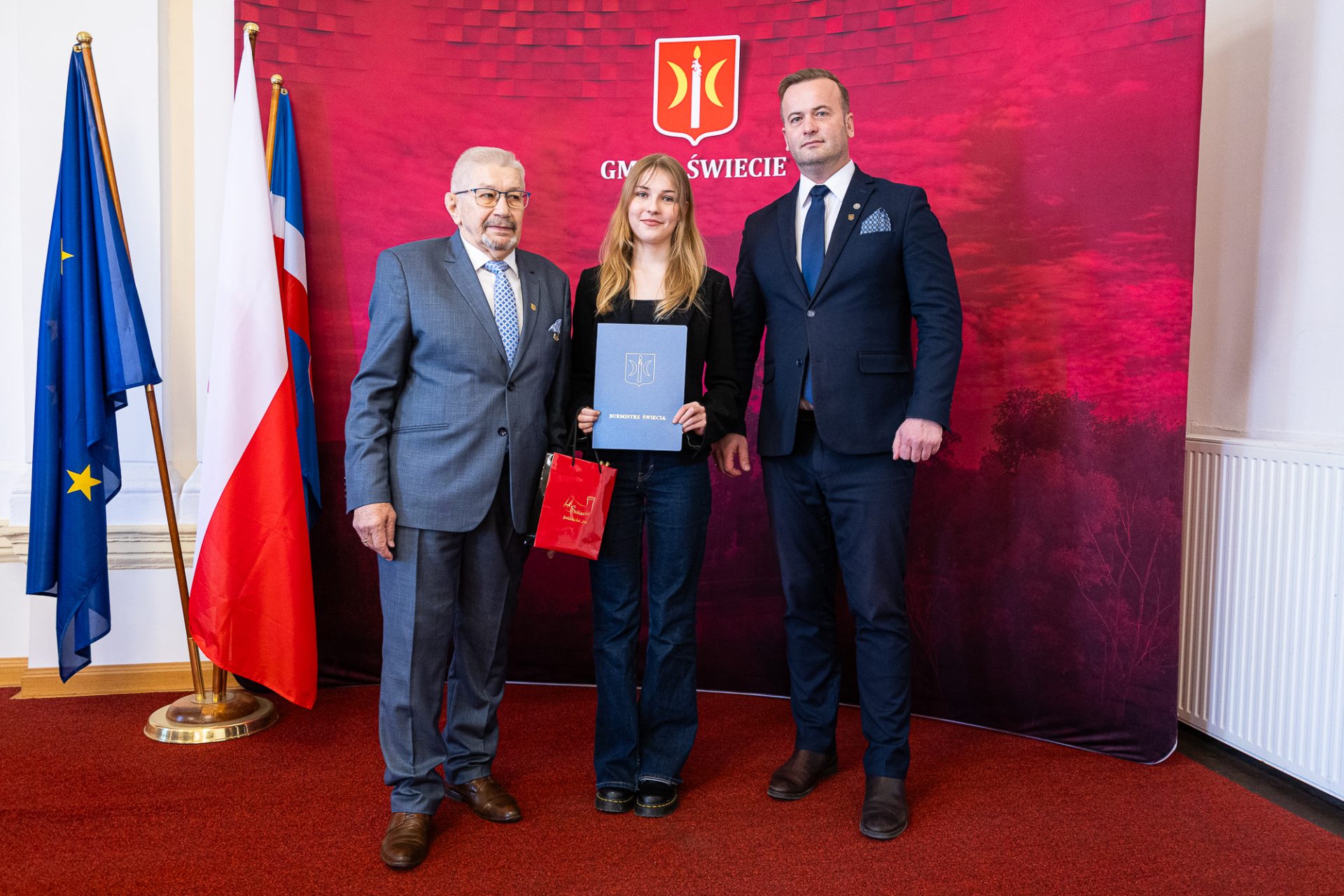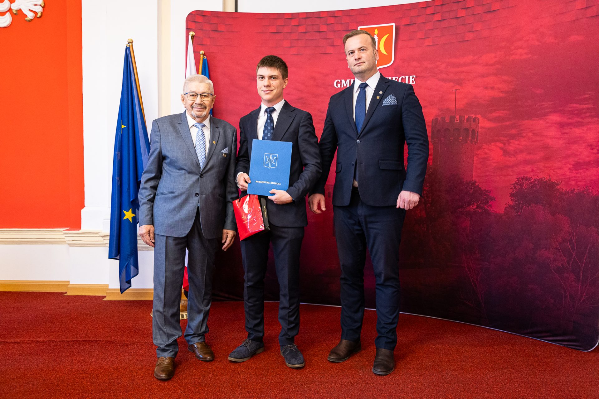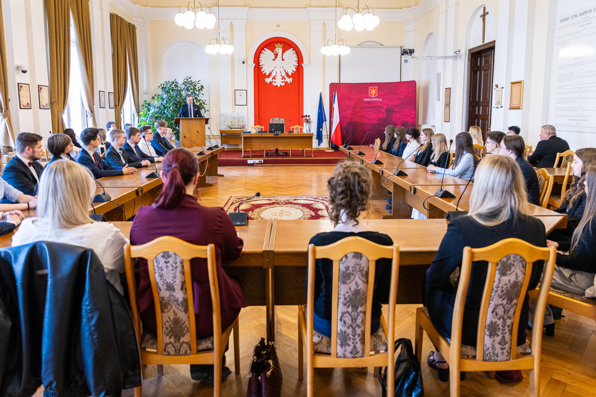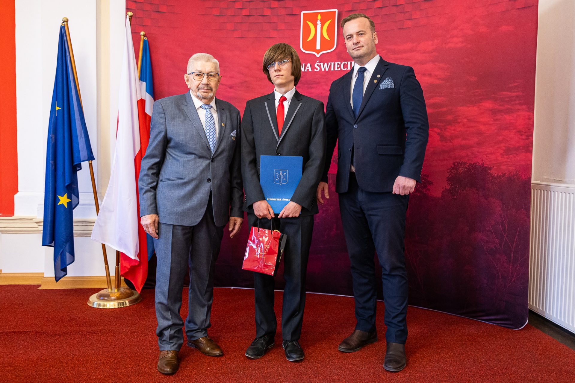 Z tej okazji uczniowie i uczennice z naszej gminy, uczący się na jej terenie, zostali zaproszeni do Urzędu Miejskiego, gdzie burmistrz Świecia, Krzysztof Kułakowski, wręczył nagrody 25 prymuskom i prymusom, doceniając ich ciężką pracę, zaangażowanie oraz determinację w dążeniu do sukcesu. To wyjątkowe spotkanie było nie tylko formą uhonorowania ich osiągnięć, ale także motywacją do dalszego rozwoju i podejmowania kolejnych wyzwań.
