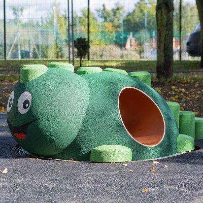 Teraz czas na ostatni etap — wylanie nawierzchni bezpiecznej. Już niedługo przestrzeń ubarwi się odcieniami beżu i zieleni.