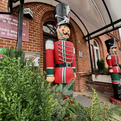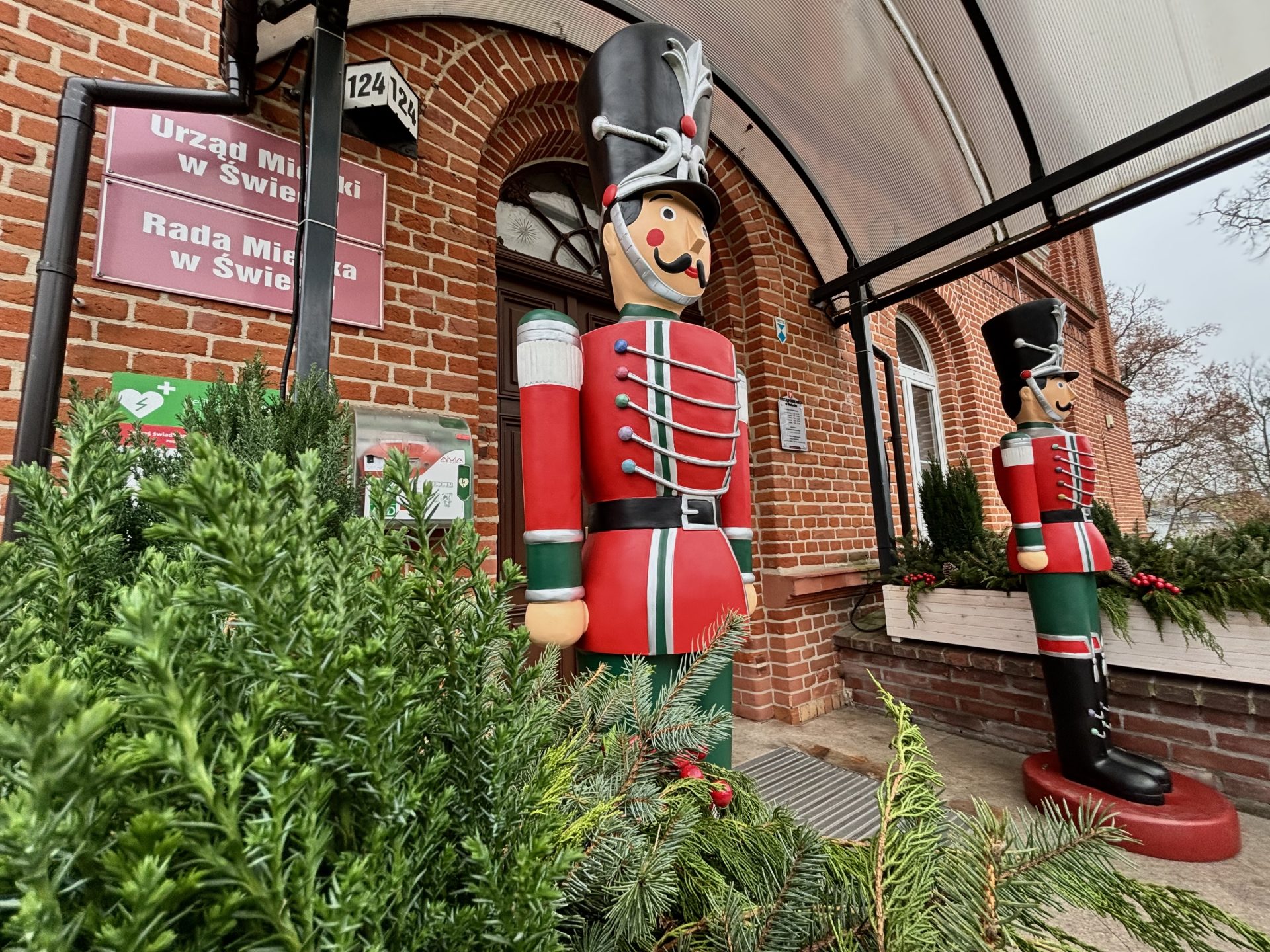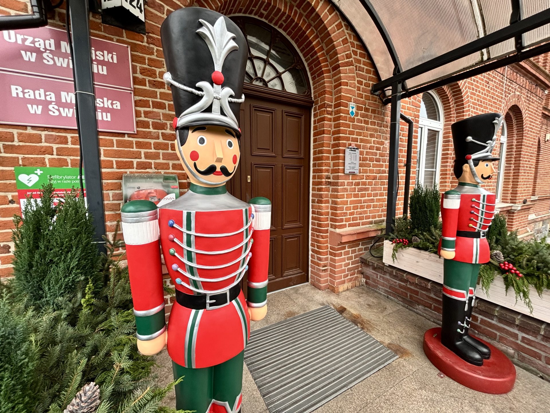 Dziś przed urzędem pojawili się świąteczni strażnicy nastroju — stroimy gminę dalej!