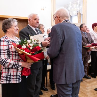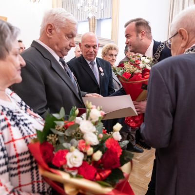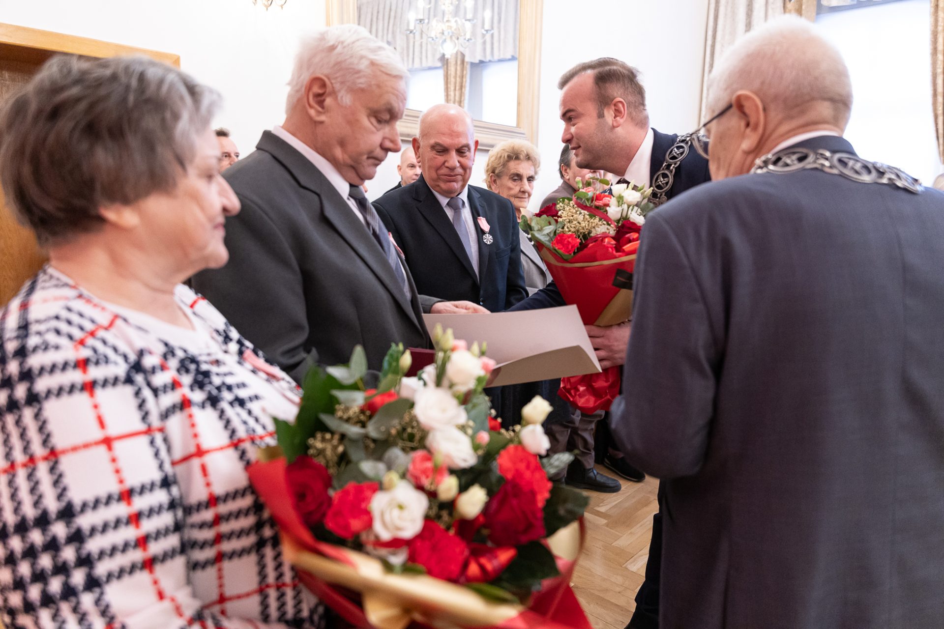 Dziś burmistrz Świecia Krzysztof Kułakowski wraz z kierownikiem USC Andrzejem Krawańskim oraz Przewodniczącym Rady Miejskiej w Świeciu Jerzym Wójcikiem – uroczyście powitali pary, które świętowały 50-lecie wspólnego pożycia małżeńskiego.